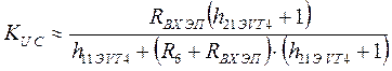 Она представляет собой эмиттерный повторитель на транзисторе VT4, принцип работы и параметры которого будут рассмотрены ниже. Эмиттерная цепь состоит из резистора R6 и источника стабильного тока на транзисторе VT5, обеспечивающего постоянство тока IК VT5. Уровень постоянной составляющей напряжения на выходе ССУ по сравнению с ее значением на входе сдвинут на величину DU= UБЭ VT4 +IK VT5×R6. (12) Для напряжения сигнала коэффициент передачи ССУ будет равен