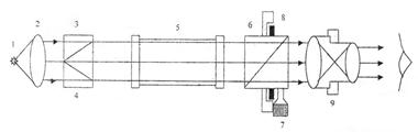 Рис. 35.3 Основными узлами прибора являются поляризатор (3,4) и анализатор (6). Поляризатор состоит из двух призм Николя (3 и 4), позволяющих получить два пучка поляризованного света, в которых плоскости колебаний векторов