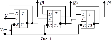 В таблицах переходов (табл.1) показано, как изменяется состояния счётчика после каждого очередного импульса. Таблица 1