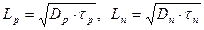 Ln – диффузионная длина электронов в p-области, Lp – диффузионная длина дырок в n-области;
