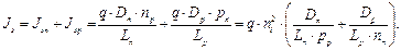 τn – время жизни электронов в p-области, τp – время жизни дырок в n-области. При условии НУИ и отсутствии генерации и рекомбинации носителей заряда в ОПЗ полная плотность тока через диод: j = js где js – плотность тока насыщения: