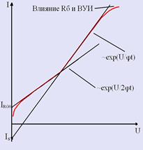 где ε0 – электрическая постоянная (ε0 = 8,854 ∙ 10 –14 Ф/см), ε – относительная диэлектрическая проницаемость материала. Влияние эффектов высокого уровня инжекции тоже искажает ВАХ. Прямая ветвь ВАХ диода показана на рисунках 1.5, 1.6.
