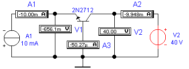 Задание 1. Исследование статических вольтамперных характеристик (ВАХ) транзистора, включенного по схеме с ОБ (с помощью амперметра-вольметра). 1.1. Снять входную ВАХ – Iэ=f(Uэб)|Uкб=const. Для этого собрать схему (рис.2). Все измерительные приборы поставить в режим измерения постоянного тока (режим DC).