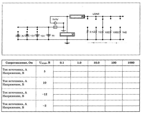 Эксперимент 3. Зависимые источники ЭДС, управляемые напряжением. а). Снятие вольтамперных характеристик с помощью амперметра и вольтметра