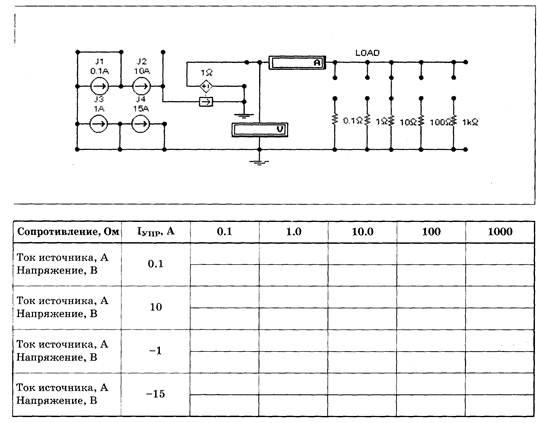 Эксперимент 1. Идеальный источник постоянной ЭДС. а). Снятие вольтамперных характеристик с помощью амперметра и вольтметра