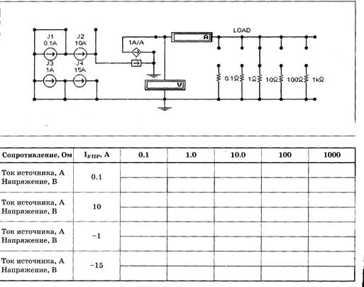 Эксперимент 6. Зависимые источники тока, управляемые током. а). Снятие вольтамперных характеристик с помощью амперметра и вольтметра