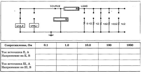 Эксперимент 8. Внешние характеристики неидеальных источников тока и ЭДС. а). Снятие вольтамперных характеристик с помощью амперметра и вольтметра