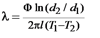 При теплотехнических экспериментах для определения теплопроводности материала Теплопроводность материала по методу цилиндрического слоя выражается уравнением