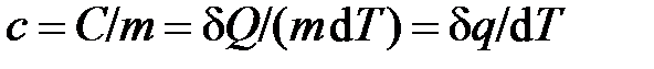 Теплоемкость тела численно равна теплоте, вызывающей изменение температуры тела на один градус. Следует заметить, что и при свершении работы изменяется температура тела. Поэтому и работу можно рассчитывать пропорционально изменению температуры: В теплотехнических расчётах вместо теплоёмкости тела широко используются удельная, объёмная и молярная теплоёмкости. Удельной теплоёмкостью называется отношение теплоёмкости тела к его массе