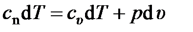 согласно которому разность удельной изобарной и изохорной теплоёмкостей для данного газа есть величина постоянная и равная удельной газовой постоянной. В случае адиабатного процесса теплота равна нулю ( Уравнение первого закона термодинамики в этом случае запишется в виде