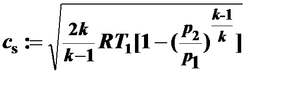 Ниже приведены результаты расчёта в системе Mathcad теоретических значений плотности, скорости потока, скорости звука и массового расхода в сопле.