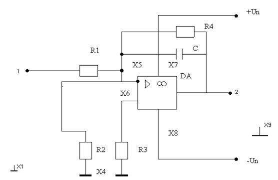 Входной ток протекает через конденсатор С в цепи обратной связи. Выходное напряжение изменяется по закону: