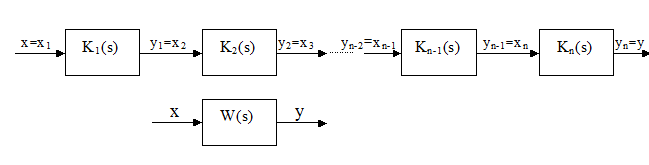 Последовательным соединением звеньев называется такое соединение, при котором выходная величина предыдущего звена поступает на вход последующего.