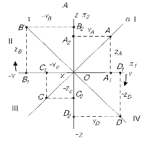 1.8. ТОЧКИ, СИММЕТРИЧНЫЕ ОТНОСИТЕЛЬНО ПЛОСКОСТЕЙ ПРОЕКЦИЙ