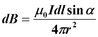 Каждый элемент тока dl создаст по закону Био – Савара в центре индукцию dB