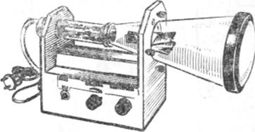 Основной частью прибора служит электронно-лучевая трубка “ЛО709 А”, смонтированная на вертикальной подставке. Выводы от отклоняющих пластин сделаны на баллоне трубки, от электродов электронного прожектора сделаны к пяти штырькам на цоколе трубки. Поэтому при объяснении устройства трубку легко можно вынуть из подставки. Подставка имеет пять гнезд для включения штырьков цоколя трубки, два зажима для подключения источника тока напряжением 6,3 В и дополнительное (гасящее) сопротивление, включенное в цепь накала (для питания накала трубки требуется 2,5 В). На анод электронного прожектора подаётся 400 В. Принципиальная схема прибора показана на рисунке 3б Варианты экспериментальных установок Date: 2015-05-08; view: 797; Нарушение авторских прав |