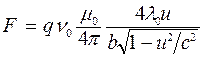 Основываясь на постулатах теории относительности и инвариантности электрического заряда, можно показать, что магнитное взаимодействие токов и движущихся зарядов является следствием закона Кулона. Для этого рассмотрим магнитное действие бесконечного прямого тока на движущийся параллельно ему в направлении тока на расстоянии b со скоростью Магнитная сила, действующая на заряд, равна