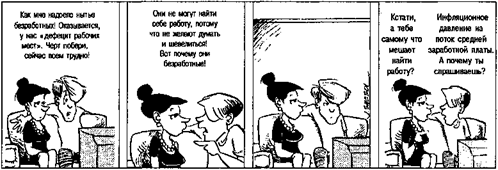 (— Как мне надоело нытье безработных! Оказывается, у нас «дефицит рабочих мест». Черт побери, сейчас всем трудно! — Они не могут найти себе работу, потому что не желают думать и шевелиться! Вот почему они безработные! — Кстати, а тебе самому что мешает найти работу? — Инфляционное давление на поток средней заработной платы. А почему ты спрашиваешь?)