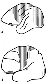 Прежде всего следует обратить внимание на то, что возникновение сознания v человека, появление речи и возможности трудиться были подготовлены эволюцией человека как биологического вида. Прямохожденне освободило передние конечности от функции ходьбы и способствовало развитию их специализации, связанной с хватанием предметов, их удержанием и манипулированием ими, что в целом способствовало созданию для человека возможности трудиться. Одновременно с этим происходило развитие органов чувств. У человека зрение стало доминирующим источником получения информации об окружающем мире. Мы вправе полагать, что развитие органов чувств не могло происходить изолированно от развития нервной системы с целом, поскольку с появлением человека как биологического вида отмечаются существенные изменения в строении нервной системы, и прежде всего головного мозга. Так, объем головного мозга человека превышает объем мозга его ближайшего предшественника — человекообразной обезьяны — более чем в два раза. Если у человекообразной обезьяны средний объем мозга равен 600 см3, то у человека он составляет 1400 см3. Еще в большей пропорции увеличивается площадь поверхности больших полушарий, так как количество извилин коры головного мозга и их глубина у человека значительно больше (рис. 4.1).