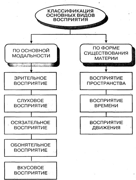Часть II. Психические процессы. Основой другого типа классификации типов восприятия являются формы существования материи: пространство