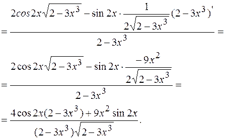 На основе этого определения могут быть выведены формулы для производных основных элементарных функций: 1. 2. 3. 4. 6. 8. 10. Особый интерес представляет производная сложной функции. Если у=f(u), где u= Пример 1 Найти производную функции: Решение. Используя правило дифференцирования сложной функции, а также формулу нахождения производной степенной функции, получим: