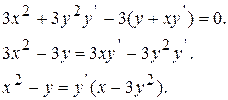 Пример 4 Найти производную функции: Решение. При нахождении производной неявно заданной функции продифференцируем обе части уравнения по переменной