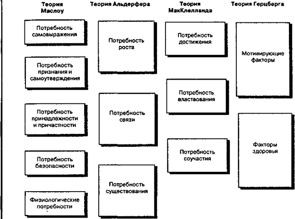 Рис 2.6. Соотношение групп потребностей в четырех теориях мотивации