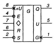 Його умовне позначення наведене на рис. 6.1, а схема - на рис. 6.2. До складу ІМС входять два операційних підсилювачі, тригер, комбінаційна логічна схема, два транзистори (один з яких досить потужний) і вихідний підсилювач.