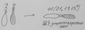 2. Нереципрокные транслокации – взаимного обмена не происходит. Потеря части коротких плеч двух негомологичных хромосом и их соединения.