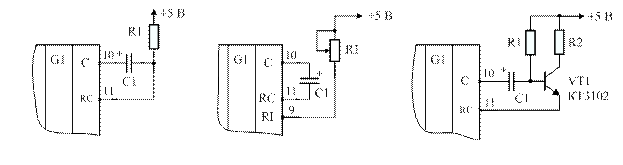 Рис. 5. Варианты включения ИМС таймеров NE555 или К1006ВИ1 (КМОП) в генераторном (а) и ждущем (б) режимах работы.