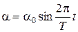 Считая, что платформа совершает гармонические колебания, можно написать зависимость угла поворота платформы от времени: