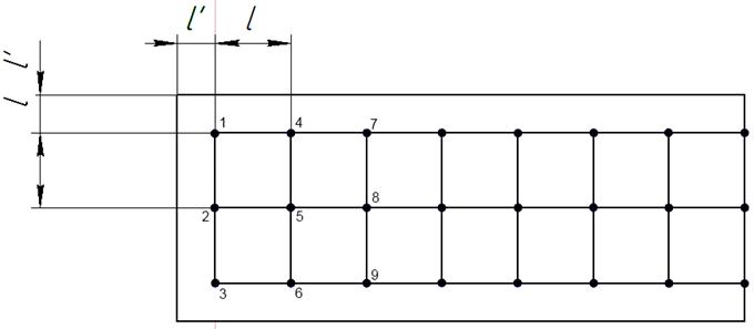 Рисунок 1.1 – Схема розташування світильників в цеху