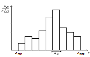 Допустим, что мы n раз измерили значение некоторой величины x. Вследствие случайных факторов получается совокупность n различных значений одной и той же величины x. Эта совокупность значений получила название конечной выборки. Пусть максимальное измеренное значение равно x max, минимальное – x min. Представим результаты измерений в графической форме. Для этого предварительно проведем некоторую их обработку. Разобьем полный интервал изменения величины x на m более мелких интервалов и введем величину интервала