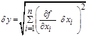где значение производной Мы получили связь погрешностей прямого и косвенного измерения для частного случая. Обобщим результат на произвольную ситуацию. Пусть величина y определяется из косвенных измерений (см. п. 1.1) и является функцией нескольких независимых величин (независимых переменных), которые в свою очередь измерены либо прямо, либо косвенно. В качестве таких «переменных» могут, в частности, выступать и константы, значения которых определяются и используются при вычислениях с определённой точностью, следовательно, сами константы, так же как и другие величины, характеризуются погрешностью. Обозначим независимые величины x 1,..., x n, и соответствующие им погрешности - δ x 1,..., δ x n. Явный вид функции y = f (x 1,..., x n) должен быть известен. Будем считать, что каждая величина x i вносит свой независимый вклад в погрешность величины y. В таком случае погрешность δ y определяется следующим образом: