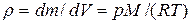 Связь между плотностью газа и его давлением найдем из уравнения Менделеева-Клапейрона (1.9):