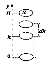 Задача 2.2. Идеальный газ с молярной массой М находится в высоком вертикальном цилиндрическом сосуде с площадью основания S и высотой Н. Температура газа Т, его давление на нижнее основание цилиндра p0. Считая, что температура и ускорение свободного падения g не зависят от высоты, найти массу газа в сосуде.