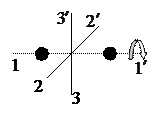 Число поступательных и вращательных степеней свободы молекул определяется числом входящих в их состав атомов. Учитывая малый размер атомов, одноатомную молекулу можно считать материальной точкой, имеющей только три поступательные степени свободы. Двухатомная молекула обладает тремя поступательными и двумя вращательными степенями свободы, т.к. поворот вокруг оси, соединяющей центры атомов (ось