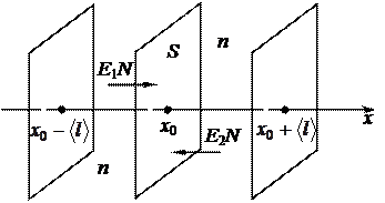 Найдем выражение для l, аналогичное (6.6) и (6.10), в случае одномерной теплопроводности в идеальном газе. Рассмотрим перенос кинетической энергии хаотического теплового движения молекул через плоскую площадку S, ориентированную нормально оси Ох (см. рис. 6.4). За секунду в обоих направлениях оси Ох через площадку переносится одинаковое число молекул