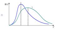 25. На рисунке представлен график функции распределения молекул идеального газа по скоростям (распределение Максвелла), где f(v)=dN/N dv – доля молекул, скорости которых заключены в интервале скоростей от v до v+dv в расчете на единицу этого интервала. Варианты ответа: величина максимума уменьшится максимум кривой сместится влево в сторону больших скоростей площадь под кривой уменьшится