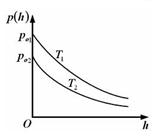32. В очень высоком вертикальном цилиндрическом сосуде находится идеальный газ при некоторой температуре Т1.Если считать внешнее потенциальное поле сил однородным, то график зависимости давления р(h) от высоты h для двух температур Т1 иТ2> Т1 имеет вид представленный на рисунке…