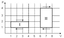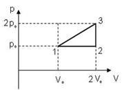 42. Газ переводят в первом случае из состояния 1 в состояние 3 непосредственно, а во втором случае через промежуточное состояние 2, как показано на рисунке. Отношение работ, совершенных газом, равно…