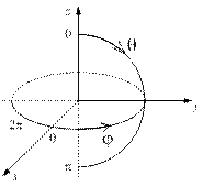 где пределы интегрирования показывают всю область изменения переменных. Формула (3.11) представляет собой математическое выражение условия нормировки в различных случаях. Величина вектора (рис. 3.5) V — положительна, изменяется от 0 до ¥. Проекция может быть и отрицательна (когда она направлена против оси). Углы можно все охватить (рис. 3.6), если пол-окружности (с θ от 0 до π) повернуть на полный оборот от φ = 0 до φ = 2π.