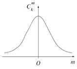 Рис. 3.7. График зависимости числа сочетаний из k элементов по m при больших значениях k Итак, вероятность, что событие наступит ровно m раз при k независимых испытаниях (формула Бернулли):