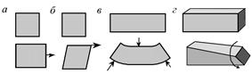 Изменение формы или размера тела называется деформацией. Деформации бывают растяжения и сжатия, причем рассматриваются только такие деформации, которые исчезают после прекращения действия сил, вызывающих деформацию. Такие деформации называются упругими. Все достаточно малые деформации — упругие. Если же деформации не исчезают после прекращения действия внешних факторов, то они называются пластическими. Различные виды деформаций изображены на рис. 5.10.