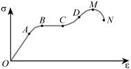 Рис.5.11. Кривая деформирования для растяжения. Разъяснения в тексте Закон Гука — пропорциональность напряжения и деформации выполняется лишь на участке ОА, однако деформации можно считать почти упругими и на участке АВ. На участке ВС удлинение ε возрастает уже без увеличения напряжения. Это явление называется текучестью. При еще большем увеличении σ кривая деформирования становится нелинейной (участок CDM). После достижения нагрузки, соответствующей точке М (предел упругости), когда напряжение достигает максимума, образец продолжает деформироваться сам так, что напряжение даже уменьшается, а затем (точка N) наступает разрыв образца. . 5.10.2. Особенности строения При деформировании кристаллических материалов (образцов) приложение нагрузки приводит к увеличению межатомных расстояний. Для полимерных (высокомолекулярных) материалов основной механизм деформирования другой. При приложении нагрузки полимерные цепи распрямляются и длина образца увеличивается. Часто при этом поперечное сечение образца уменьшается (рис.5.12). Материалы, обладающие такими свойствами, называются эластомерами или высокоэластичнымиматериалами. Типичными примерами эластомеров являются каучук и резина.