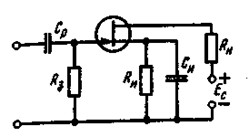 4. В усилительном каскаде с общим истоком, показанным на рисунке 3.4, сопротивление нагрузки RH = 20 кОм. Эффективное входное сопротивление полевого транзистора 20 кОм, рабочая крутизна S = 2 мА/В. Определить коэффициент усиления каскада.