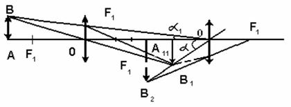 Микроскоп. Оптическая система микроскопа состоит из короткофокусного объектива и окуляра. Ход лучей в микроскопе изображен на рис. 2. Изображение, даваемое объективом, рассматривается в окуляр, как в лупу, т.е. окуляр располагается таким образом, чтобы мнимое увеличенное изображение предмета оказалось на расстоянии наилучшего видения. Различают линейное N и угловое Y – увеличение микроскопа.