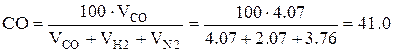 де VCO, VH2, VN2 – об’єми окису вуглецю, водню й азоту в генераторному газі, м3. Склад змішаного газу, %: