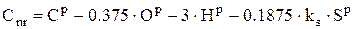 де ks – коефіцієнт, що характеризує розподіл сірки між сполуками. Приймається рівним 0,1-0,5. Сумарний вихід летких на один кілограм палива складає: Доля нелеткого вуглецю, що залишився після виділення летких, визначається за допомогою наступної залежності: