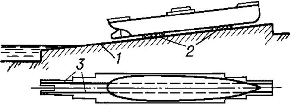 Рисунок 6.1 Стапель: 1 – спусковой фундамент; 2 – салазки; 3 – спусковые дорожки.